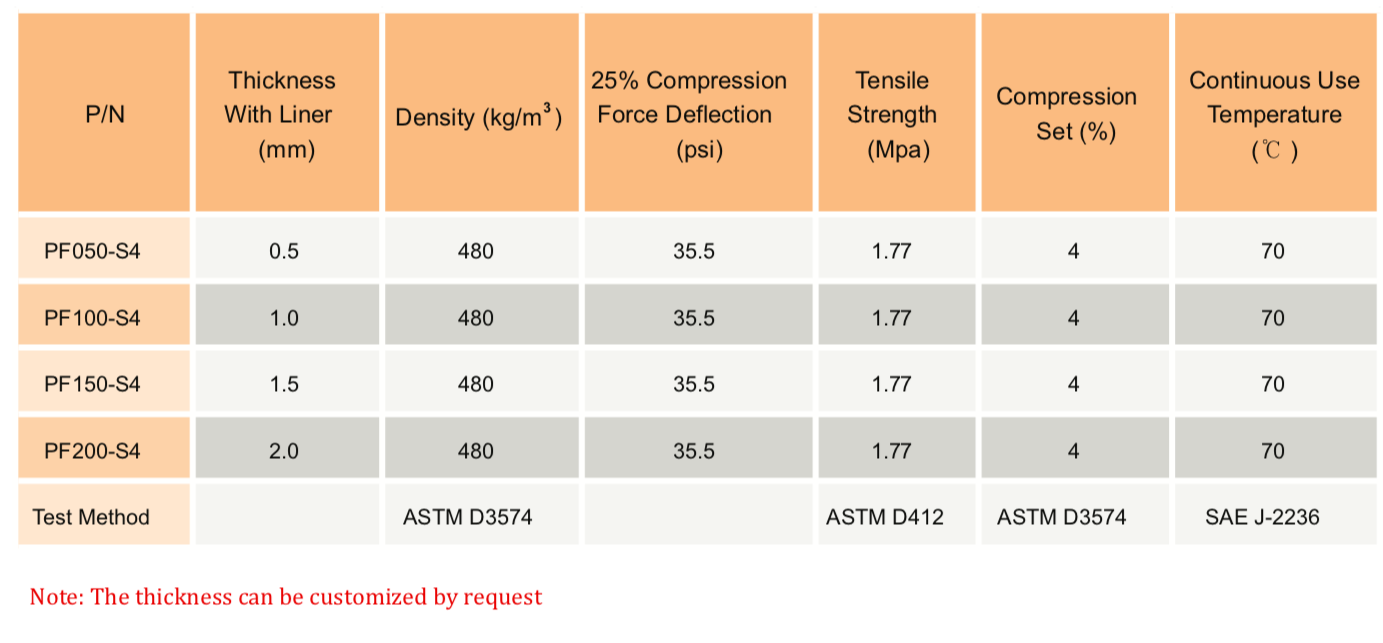 TM PF-S4 系列是一種穩(wěn)固、快速回彈的泡沫,用于電子設(shè)備的緩沖、保護(hù)性密封和長(zhǎng)期間隙填充。S4系列具有非常好的耐磨性、高密封性能和優(yōu)異的沖擊吸收性能,可用作腳墊。" />